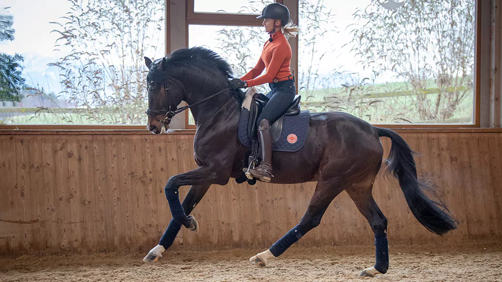 Die Galopp-Pirouette ist eine der Königslektionen der schweren Klasse. Die Lektion fördert die Koordination und Tragkraft. Die Hankenbeugung und Lastaufnahme der Hinterhand werden geschult und das Pferd wird vorne groß und erhaben.